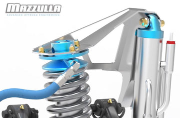 Mazzulla Offroad’s 2007-2018 GM 1500 long travel kit is designed to get the most suspension performance out of your 2 or 4 wheel drive truck while being completely bolt on. Our latest design features uniball pivots that can be adapted to any 2007-2018 GM 1500 truck using taper adapter pins to match spindles and arms to cast steel, stamped steel, and aluminum suspension types. This system is 3.5” wider per side and the wheel/tire are positioned to give maximum clearance to the firewall and recommended fiberglass fenders. The coilover shock is an OEM replacement that uses the factory upper mount and bar pin style lower mount and if additional dampening is needed we offer a weld on upper secondary mount that accepts a 2.5” or 3.0” bypass shock. This kit is perfect for anyone that wants to turn their stock ½ ton GM truck into a very capable offroad vehicle without a ton of fabrication or breaking the bank. Adapter pins, axles and shock mounts sold separately.