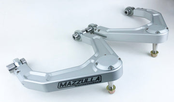 These billet machined uniball upper control arms are the ultimate performance, strength and durability gain for the front of your Ford Raptor. In a lifted application the upper control arms need corrected camber and caster geometry so that the factory alignment can be achieved. When adding aftermarket extended travel coilover shocks you will need more angularity in the upper control arm outer suspension pivot and these large 1.25" uniball bearings offer more clearance as well as an increased strength and longevity of the joint. The heim joint spacers and uniball pins are made using heat treated stainless steel and hold a tolerance .0005" for maximum fitment on bearing bores and factory upright tapers. These arms are machined in low volume using USA materials and the attention to detail are second to none. The combination of the upper control arm and a shock will yield improved handling characteristics, strength for offroad use and 40% increased wheel travel while maintaining the stock track width and suspension mounting locations. Ease of installation, high quality billet control arms and a race style shock absorber make this setup a great choice for anyone wanting to go fast in the dirt.