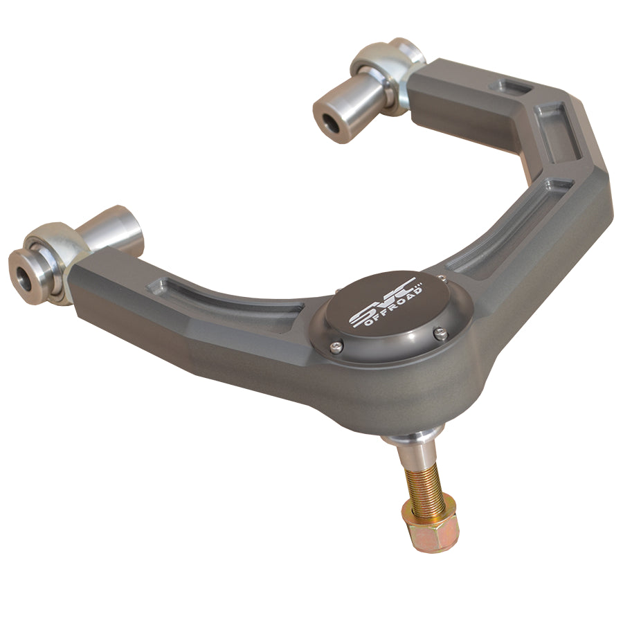 SVC Offroad UCA's increase the strength of your Bronco's suspension to give you a locked down feel both on and offroad. They are both camber and caster adjustable and utilize FK Bearings and Rod Ends for the ultimate in strength. We took extra steps to hard anodize the arms for greater durability and have added billet dust caps for increase center bearing life.
