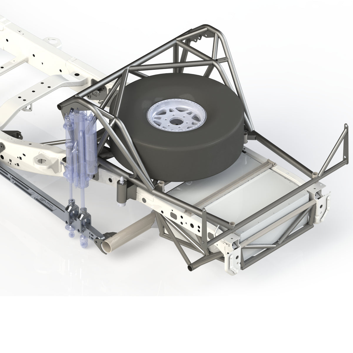 The new Link Kit was designed from the ground up utilizing CAD technology and the latest in aerospace engineering to achieve a system that mates perfectly to your chassis. We know how important it is for Raptor owners to maintain their existing bed, so that is what we have done. Gone are the days of chopping off the entire back of your truck, leading to massive long term headaches, diminished value and overly long installs. Our Link kit drops through strategically cut slats and holes in the bed and bolts directly to added pivot points that have been welded directly to the frame. The frame itself gets reinforced with 4130 frame plating and tube gusseting to create triangulation and strength, plus get's tied into a new under the bed 40 gallon fuel cell that maintains CARB compliance, but offers a much better center mass location behind the rear axle. The Bed structure is crafted from the same 4130 chromoly tubing that is found on every Trophy Truck built today. Bed rack layout from tires, gas cans, jack, cooler, battery and fluid tray locations can all be incorporated into the design, or it can be left simple for maximum bed utility.