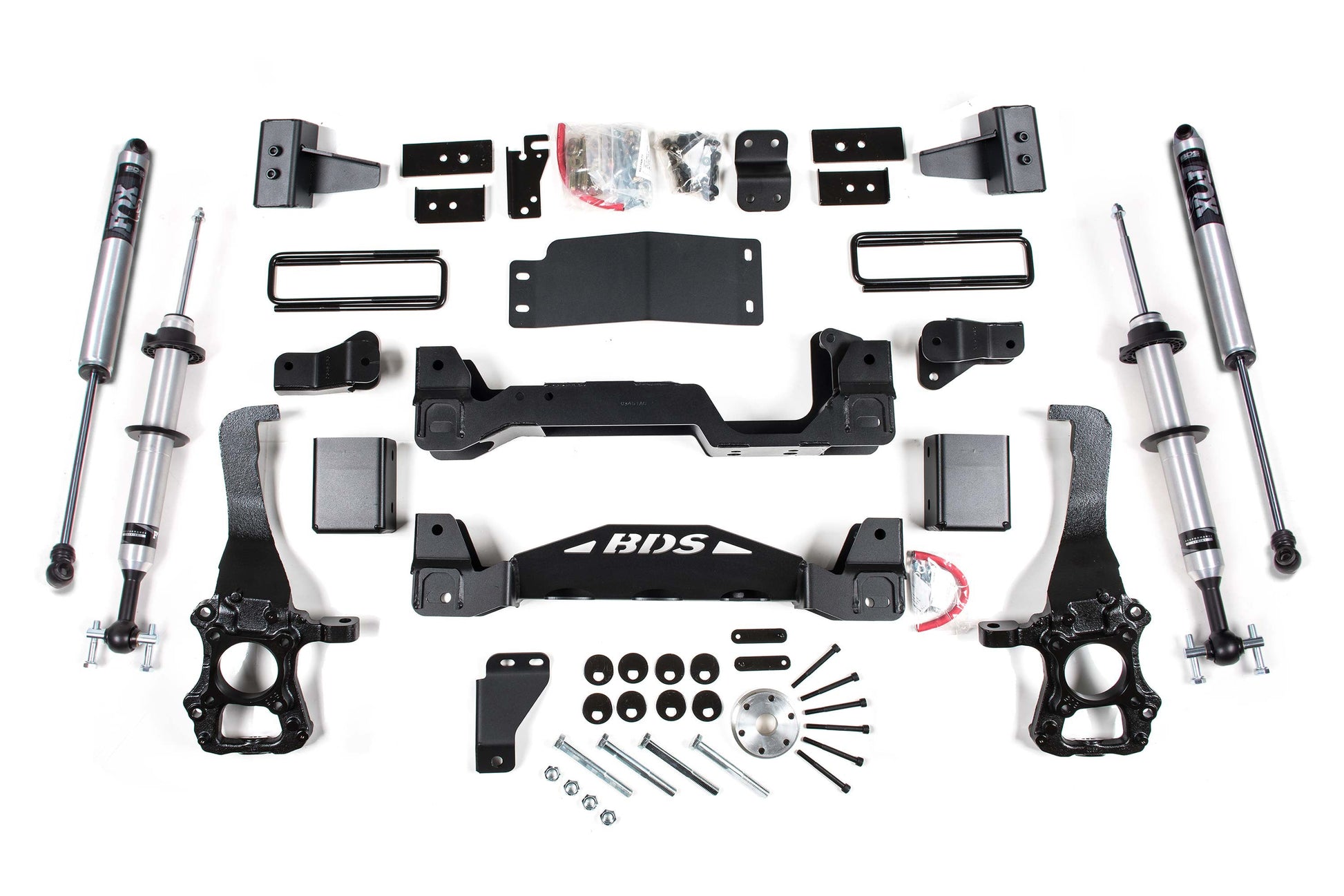 Prepare to get your 2015-2020 Ford F150 4WD truck dirty after installing a 4-inch lift kit with FOX 2.0 struts by BDS Suspension. Designed to improve stance the BDS 4 inch lift kit with FOX 2.0 front struts give more capability off-road. This kit includes everything necessary to set your F150 truck up right with clearance for up to 35" tires.