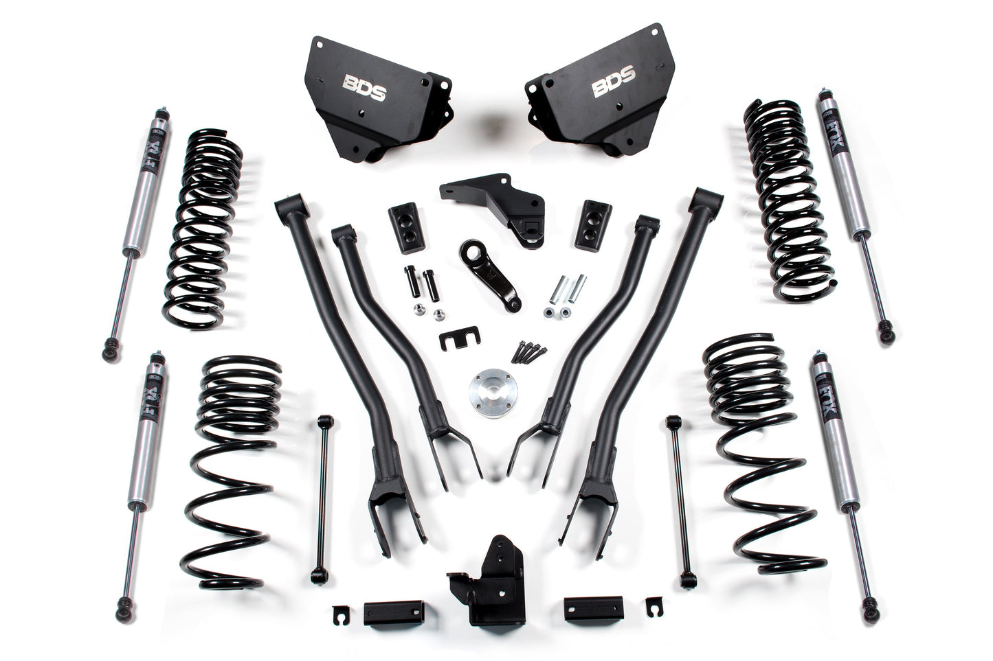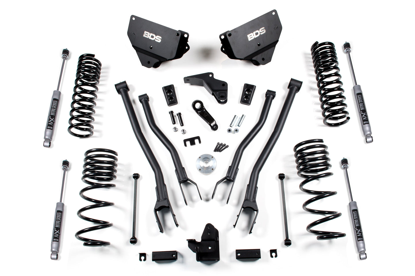 Built to outperform, BDS Suspension engineered a 4-inch lift kit with 4-Link conversion for your 2014-2018 RAM 2500 diesel powered truck that will surely impress. Designed to improve stance, performance, and capability, this kit includes everything necessary to set your truck up right with clearance for up to 35" tires.