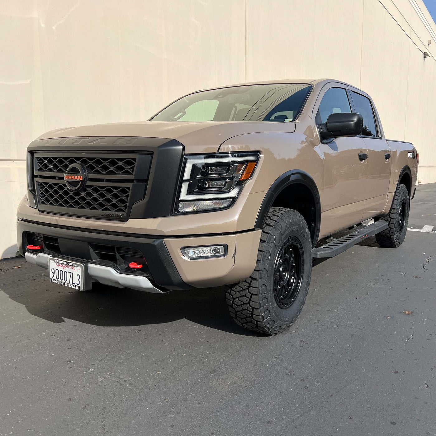 Dirt King 4130 Upper Control Arms – Built to Solve Real Problems If you drive a 2004–2023 Nissan Titan (2WD or 4WD, Non-XD) and you're ready for a suspension upgrade, these 4130 UCAs are for you. We made them to tackle the exact issues we kept running into ourselves—squeaky bushings, joints that need constant attention, and geometry thrown off as soon as you add a lift. Whether you’re daily driving, overlanding, rock crawling, or chasing desert trails, these UCAs handle it all. These arms feature maintenance-free SilentSpin™ bushings that eliminate grease fittings and unwanted noise, along with heavy-duty Probearing Pro 4 ball joints for high articulation and superior strength. The ball joints are sealed to block out debris and finished with anodized caps. Built to maintain proper alignment from 0–3" of lift, these arms also add roughly an inch of down travel compared to stock, a must-have when paired with our shocks or other aftermarket coilovers like King, Fox, Icon, and more. Why Go Dirt King? SilentSpin™ bushings — no squeaks or maintenance Pro 4 ball joints with sealed dust caps Rebuildable, USA-made construction Precision-welded 4130 chromoly tubing Shipped preassembled for faster installs Upgrade Your Titan With Confidence Built and tested in the USA, these 4130 UCAs are engineered for the long haul—perfect for rigs that work hard on weekdays and explore even harder on weekends. It’s the last set of upper control arms you’ll ever need. Specifications Amount of Lift: Allows for 0–3” of lift Track Width: Stock Maximum Backspacing: 4.75” Minimum Rim Size: 17” Note: Do not install with coil spacers combined with extended-length aftermarket shocks. What's Included 4130 Chromoly upper control arms Probearing SilentSpin Hybrid bushings Probearing Pro 4 Superior Performance Ball Joints Ball joint caps Dirt King sticker pack Features Pro 4 Series Ball Joints – Forged SAE4140 housing, 34mm ball stud, and induction-hardened construction for maximum strength and smoother steering feel SilentSpin Hybrid Bushings – Maintenance-free, greaseless, and engineered for quiet, free-spinning articulation Geometry Corrected – Improved caster and pivot angles deliver better handling and control with up to 3” of lift 4130 Chromoly Construction – Built with high-strength tubing and reinforced gussets for extreme durability Fully Rebuildable Design – All wear items are replaceable for long-term reliability Corrosion-Resistant Finishes – Zinc-plated hardware and black powder coat protect against the elements Professionally MIG Welded – Ensures structural integrity for demanding off-road use Preassembled – Quick, hassle-free installation with no guesswork Made in the USA – Built with pride and quality you can trust Compatibility 2004–2015 Nissan Titan 2WD / 4WD 2016–2023 Nissan Titan (Non-XD) 2WD / 4WD *Not compatible with 2016+ Titan XD models *This product is designed to pair with OEM and Dirt King parts. Compatibility with other brands must be approved by the respective manufacturer.